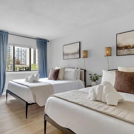 Dieses Apartment bietet einen Balkon, eine Küche und eine voll ausgestattete Küche und Annehmlichkeiten wie eine Klimaanlage. Für Ihren Komfort stehen Ihnen im Apartment Modern Stylish Oasis King Bed Sleeps 8 Central Location eine getrennte Toilette, eine Dusche und eine Waschmaschine zur Verfügung. Darüber hinaus gibt es im Badezimmer einen Haartrockner und Badelaken.